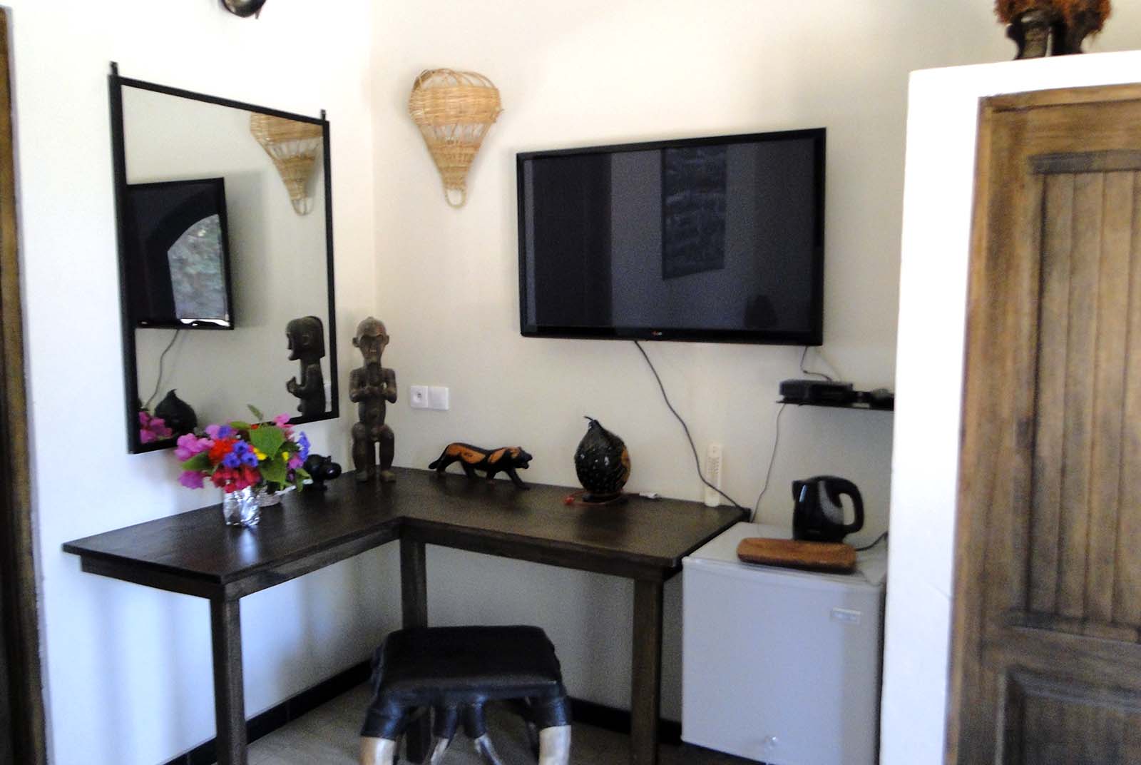 - Équipements : Climatisation, Coffre fort, Handicapés : Chambre et salle de bain aménagées, , Moustiquiaire, Petit-déjeuner compris, Radio + prises USB, Salle de bain privative 11m2 (WC & Douche), Sèche cheveux, Service de blanchisserie (payant), Terrasse, TV (Canal+), WIFI