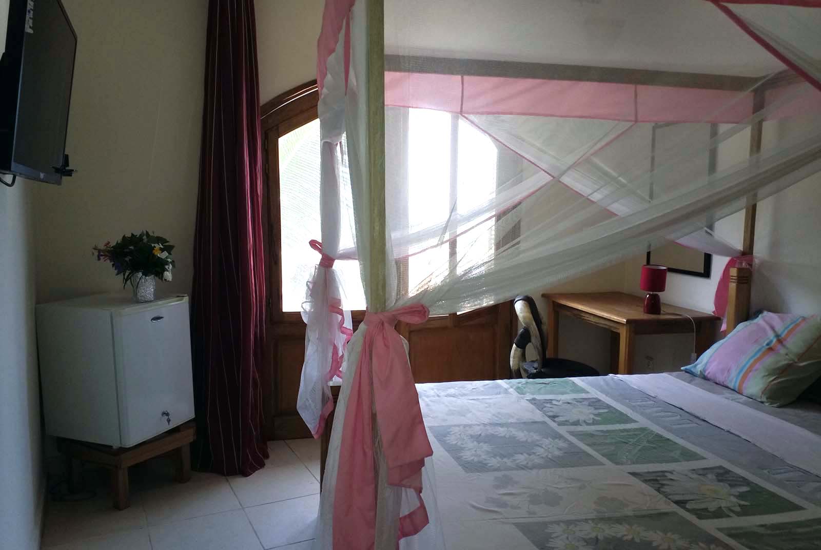 - Équipements : Climatisation, Coffre fort, , Moustiquiaire, Petit-déjeuner compris, Radio + prises USB, Salle de bain privative 4m2 (WC & Douche), Sèche cheveux, Service de blanchisserie (payant), Terrasse, TV (Canal+), WIFI
