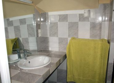 Cette grande chambre de 32 m2, située au 1er étage de la Villa, est équipée d’un grand lit double, de 2 lits simples et d’une salle de bain (Douche & WC) privative de 4 m2 .