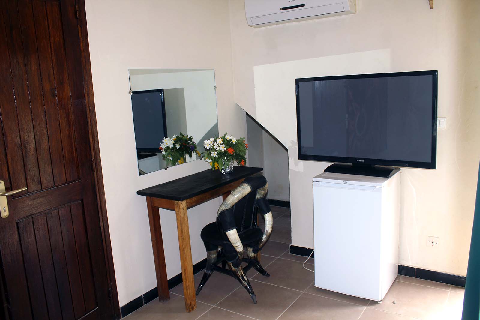 - Équipements : Climatisation, Coffre fort, , Moustiquiaire, Petit-déjeuner compris, Radio + prises USB, Salle de bain privative 4m2 (WC & Douche), Sèche cheveux, Service de blanchisserie (payant), Terrasse, TV (Canal+), WIFI