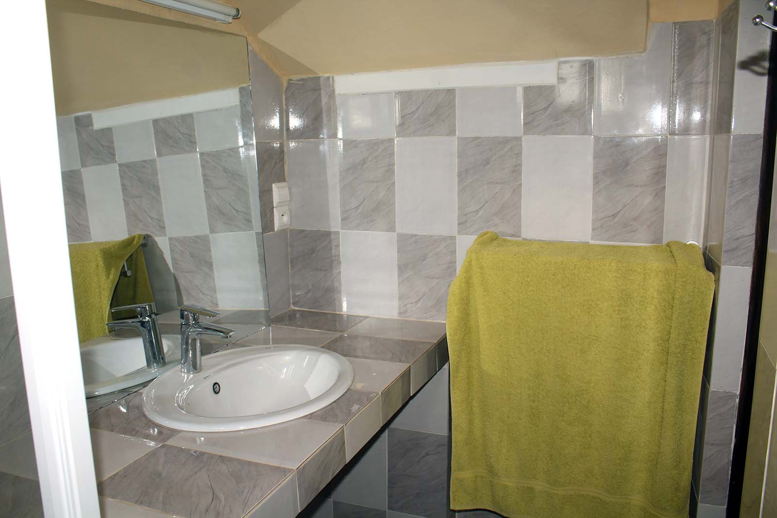 Cette grande chambre de 32 m2, située au 1er étage de la Villa, est équipée d’un grand lit double, de 2 lits simples et d’une salle de bain (Douche & WC) privative de 4 m2 .
