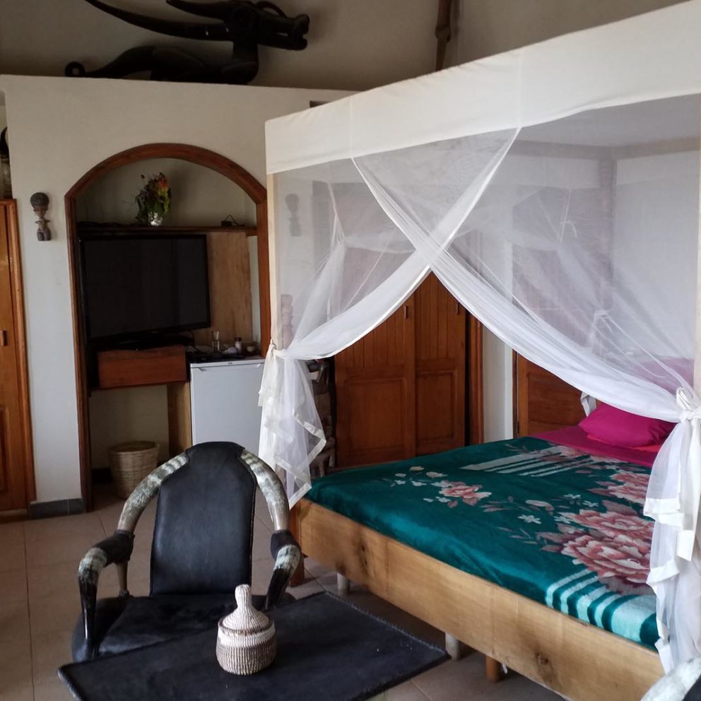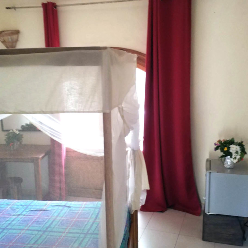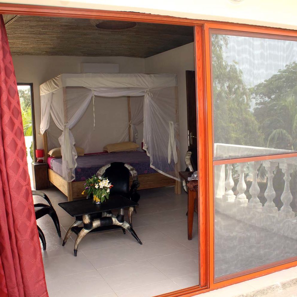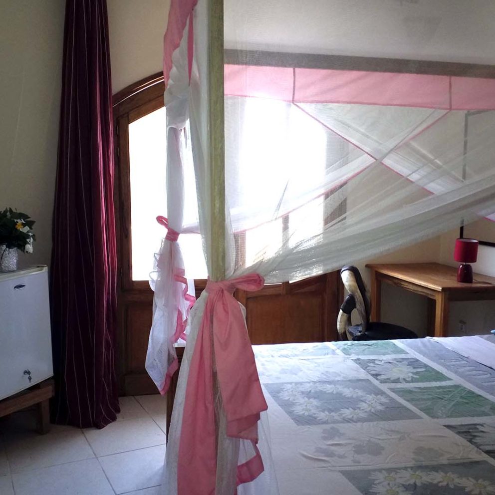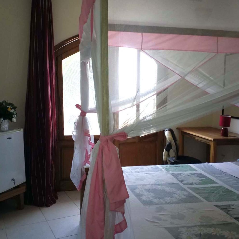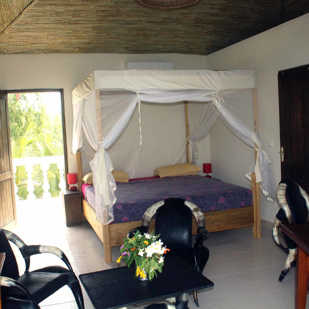 - Équipements : Climatisation, Coffre fort, Minibar (consommations payantes), Moustiquiaire, Petit-déjeuner compris, Radio + prises USB, Salle de bain privative 7m2 (WC & Douche), Sèche cheveux, Service de blanchisserie (payant), Terrasse, TV (Canal+), WIFI