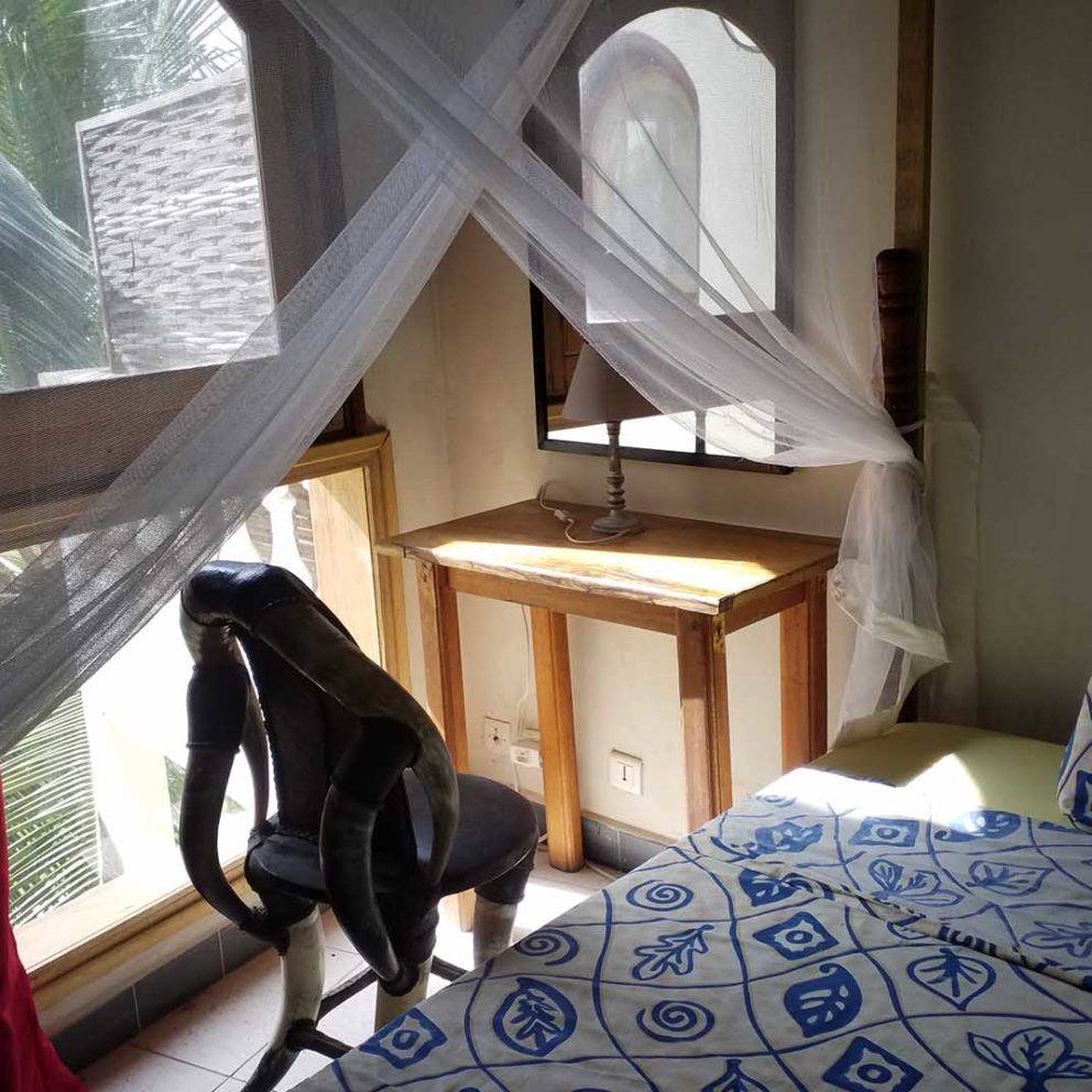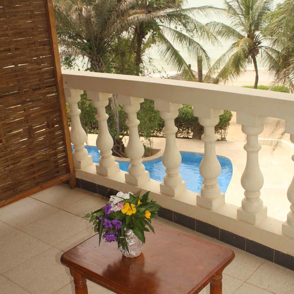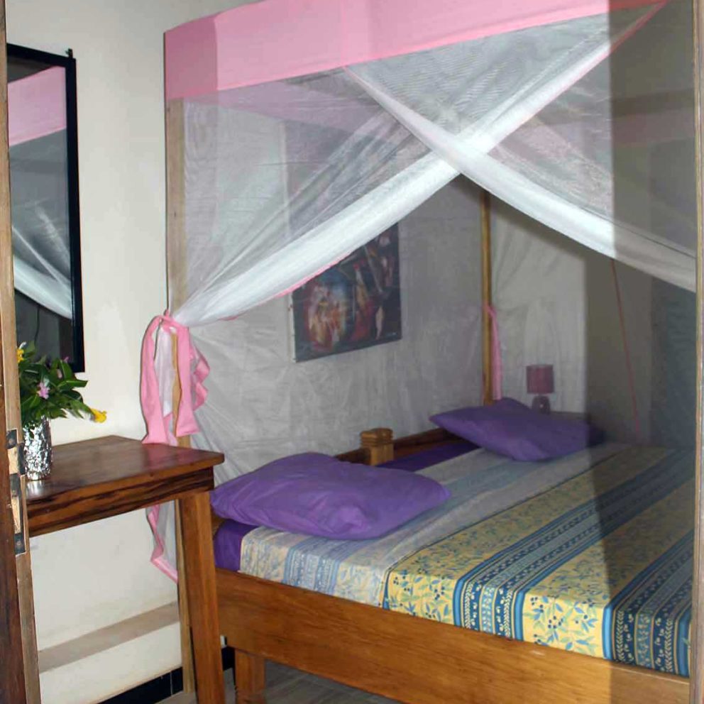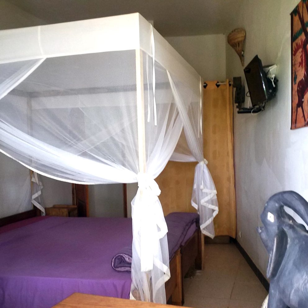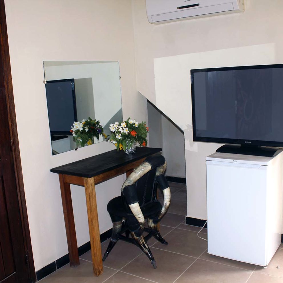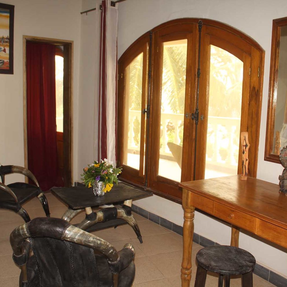 - Équipements : Climatisation, Coffre fort, Minibar (consommations payantes), Moustiquiaire, Petit-déjeuner compris, Radio + prises USB, Salle de bain privative 7m2 (WC & Douche), Sèche cheveux, Service de blanchisserie (payant), Terrasse, TV (Canal+), WIFI