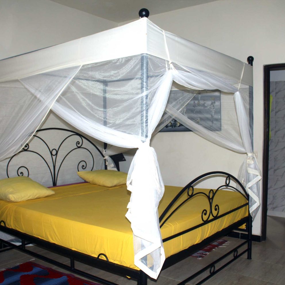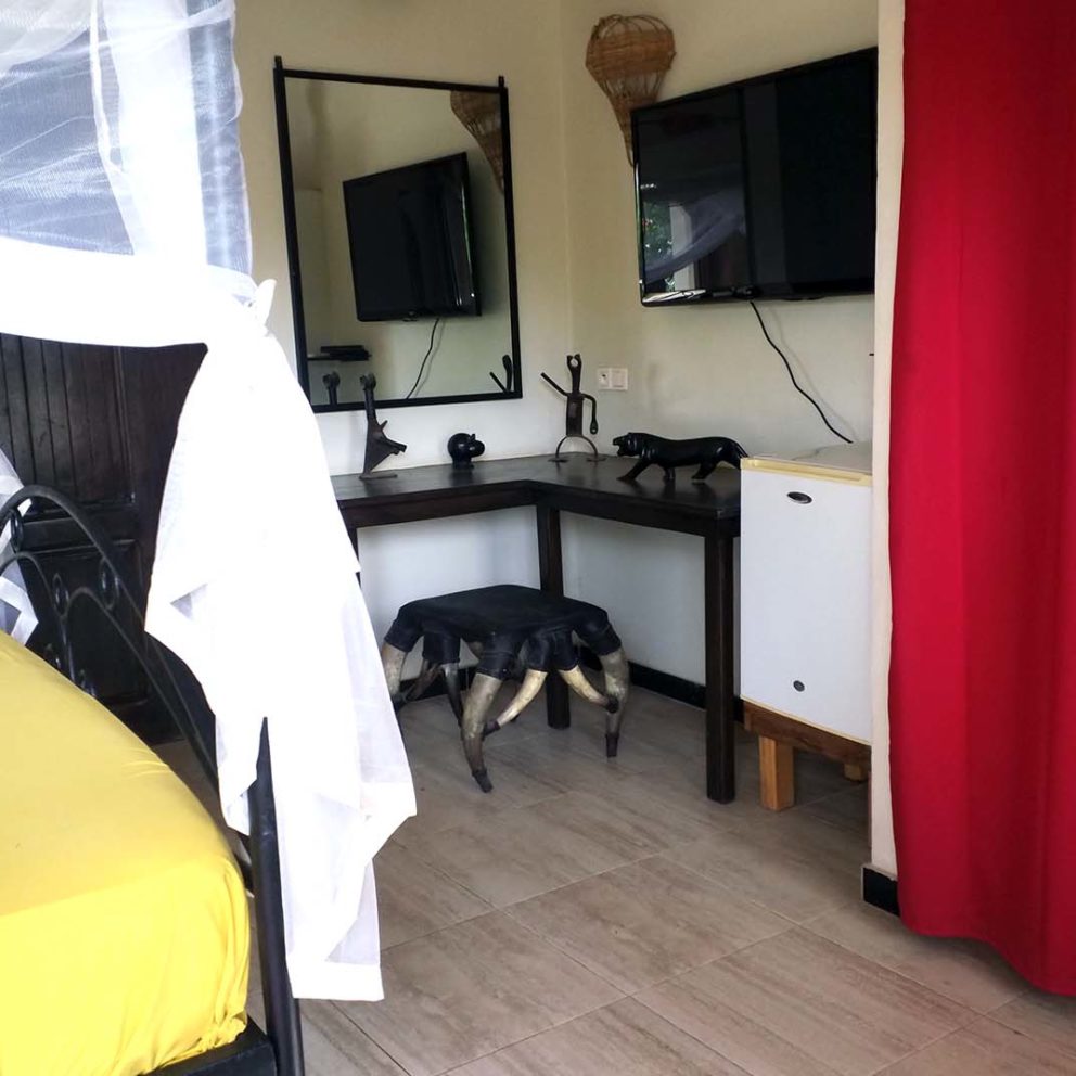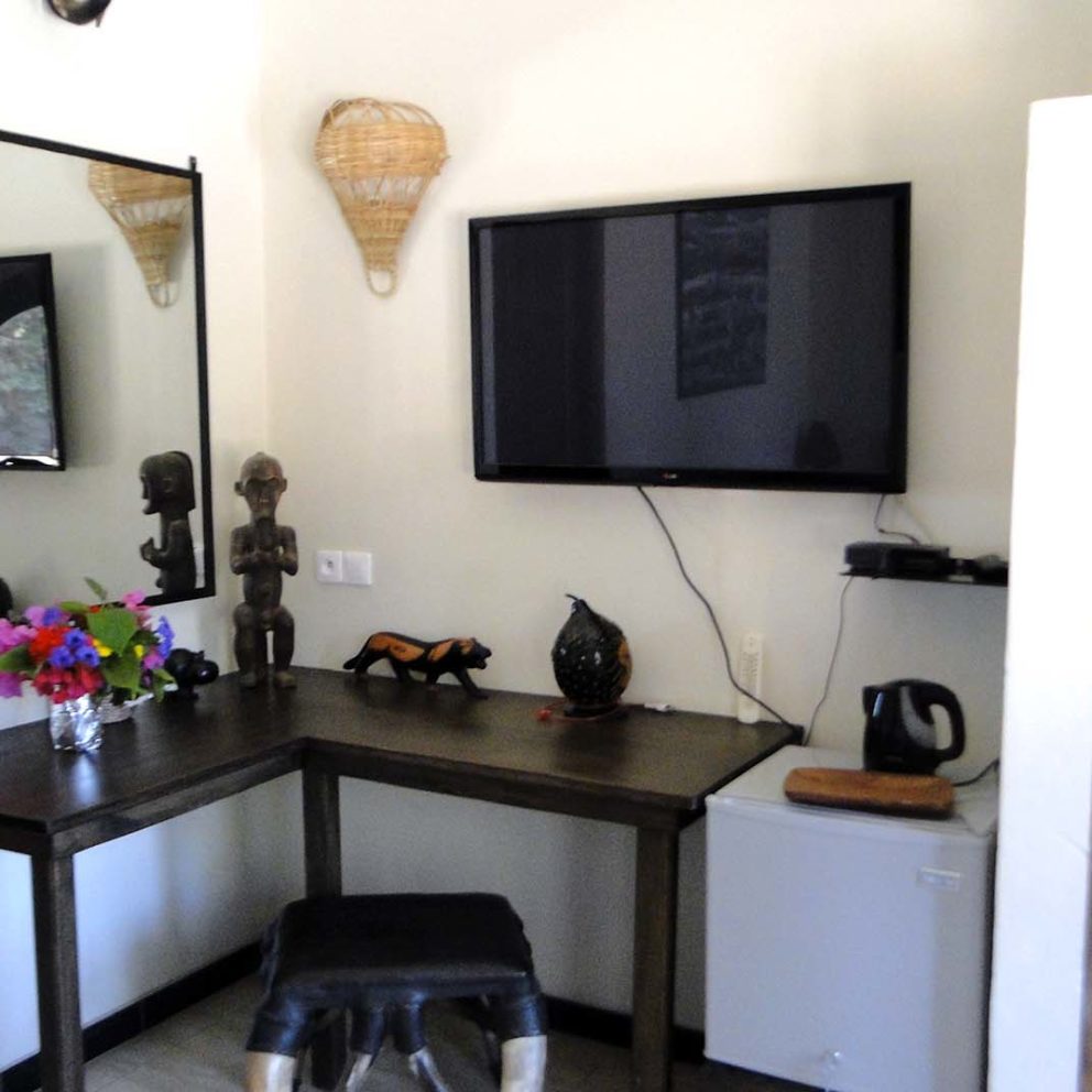 - Équipements : Climatisation, Coffre fort, Minibar (consommations payantes), Moustiquiaire, Petit-déjeuner compris, Radio + prises USB, Salle de bain privative 5m2 (WC & Douche), Sèche cheveux, Service de blanchisserie (payant), Terrasse, TV (Canal+), WIFI