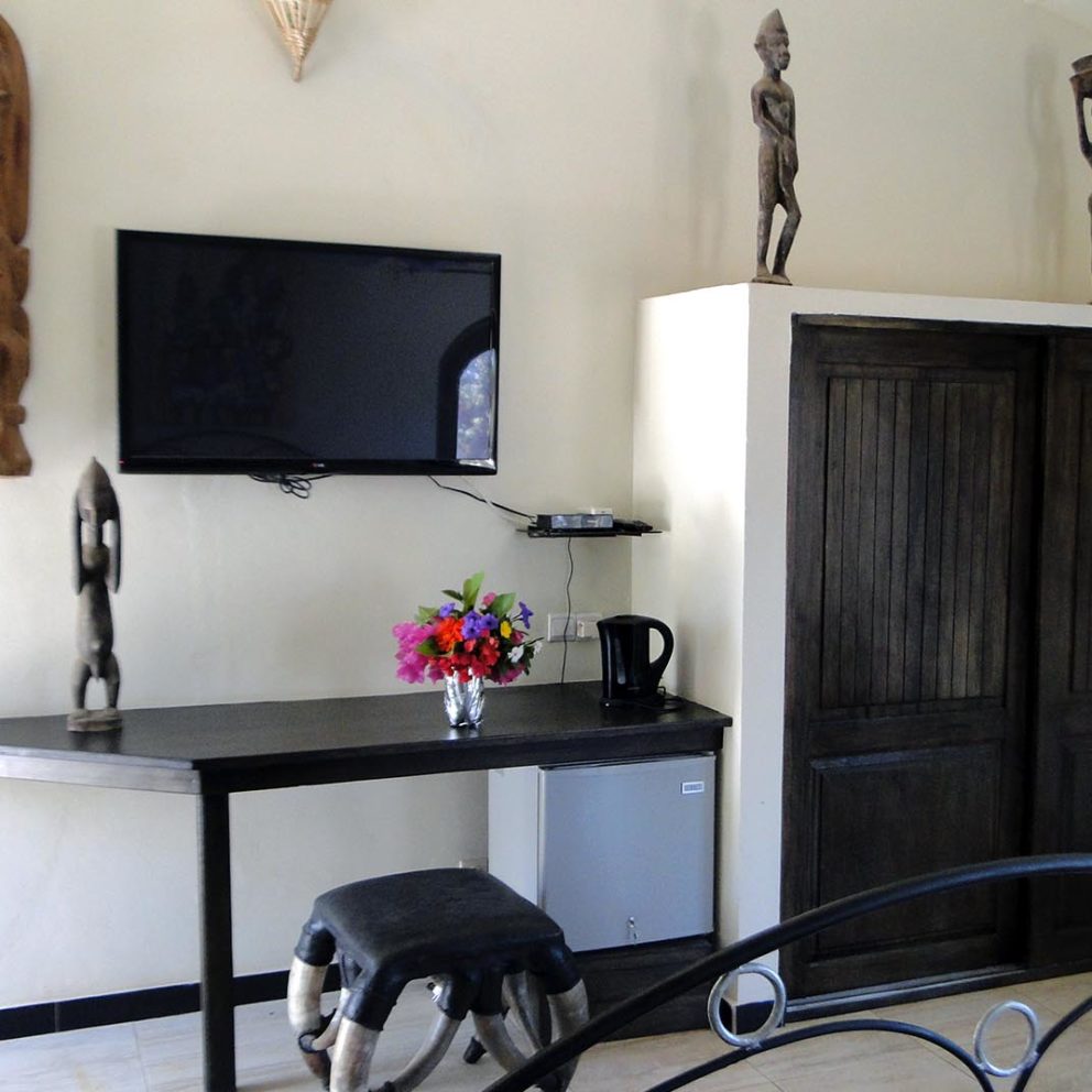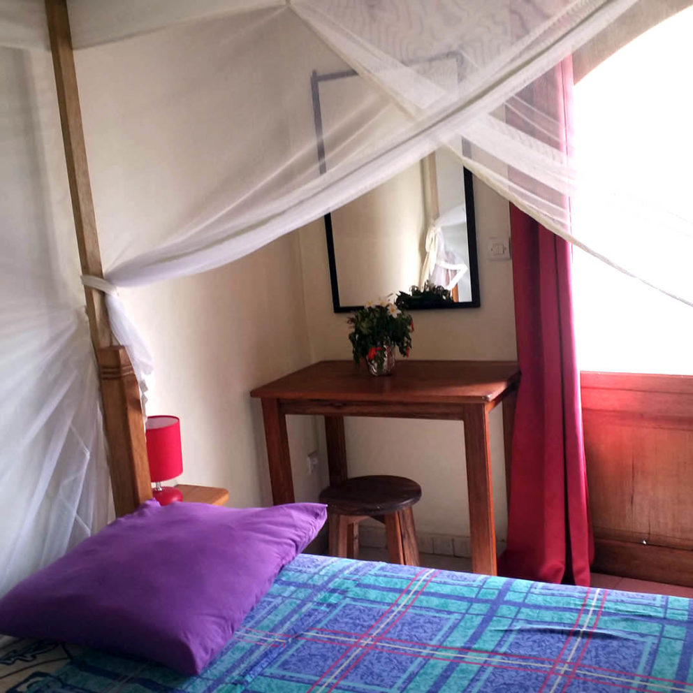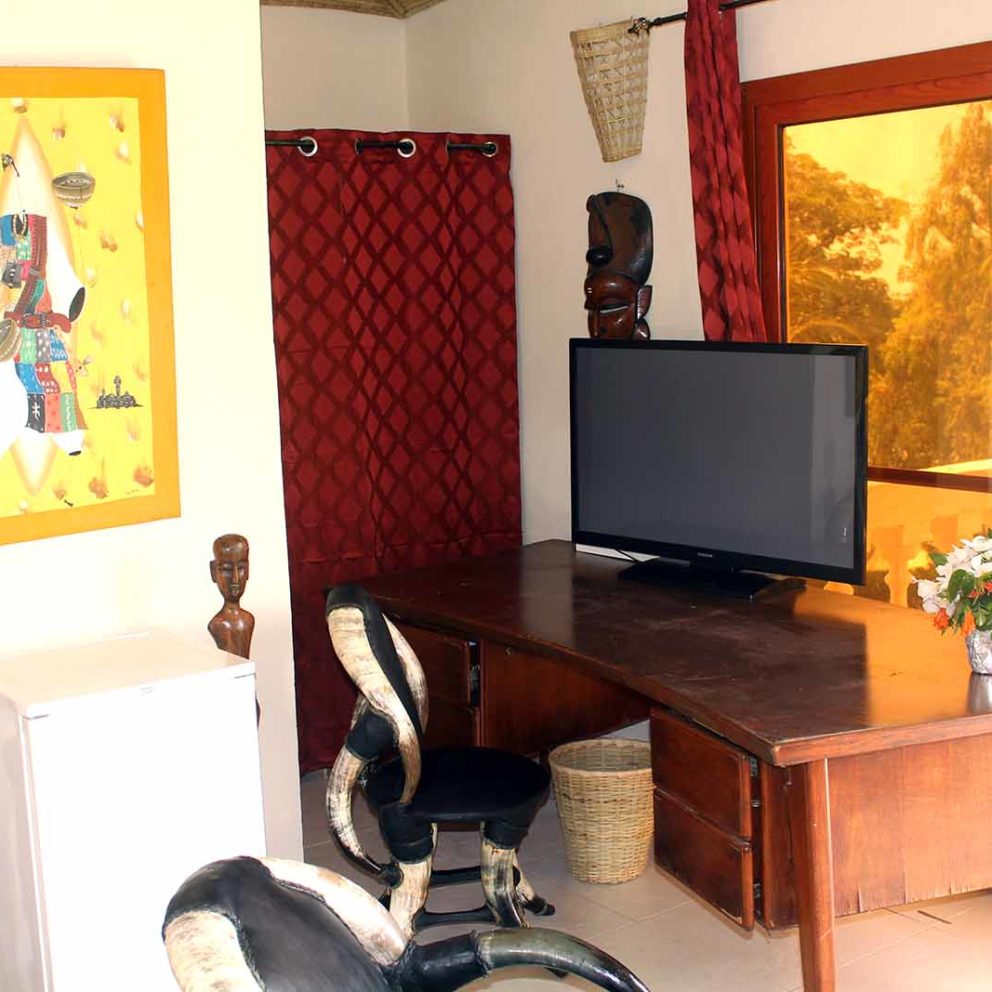 - Équipements : Climatisation, Coffre fort, Minibar (consommations payantes), Moustiquiaire, Petit-déjeuner compris, Radio + prises USB, Salle de bain privative 4m2 (WC & Douche), Sèche cheveux, Service de blanchisserie (payant), Terrasse, TV (Canal+), WIFI